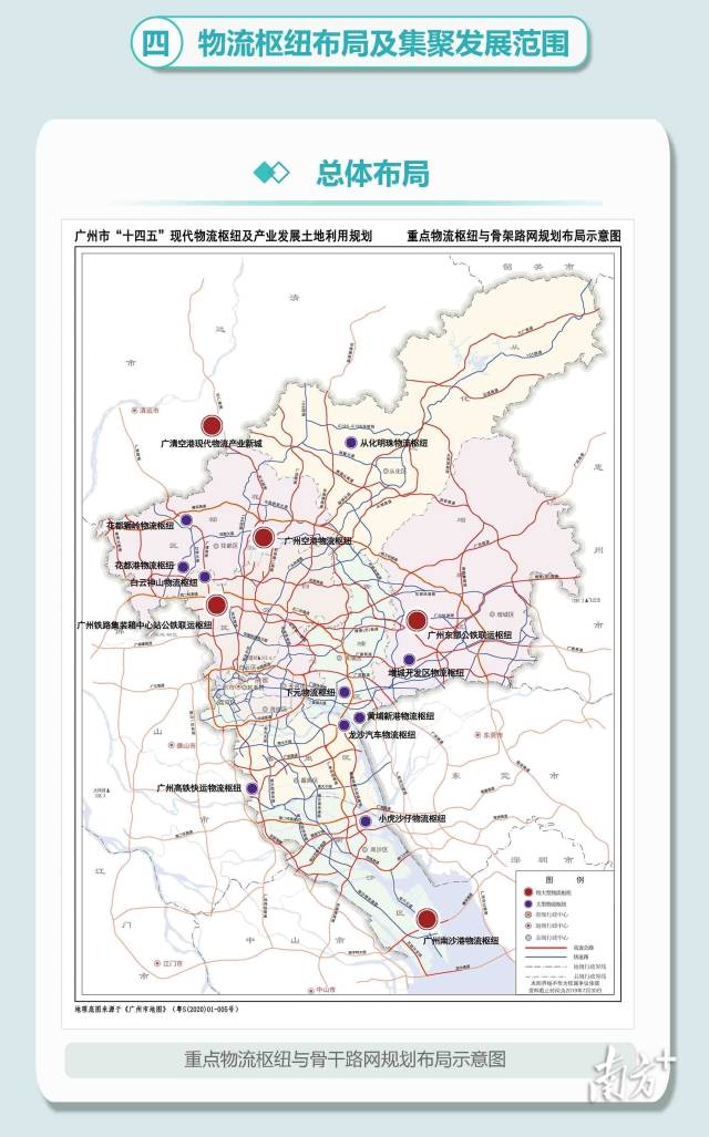 今年,广州市发改委发布了《广州市交通物流融合发展第十四个五年规划》,明确打造以5个特大型物流枢纽为核心、10个大型物流枢纽为骨架、若干物流骨干节点为补充的“5+10+N”物流枢纽空间布局体系。