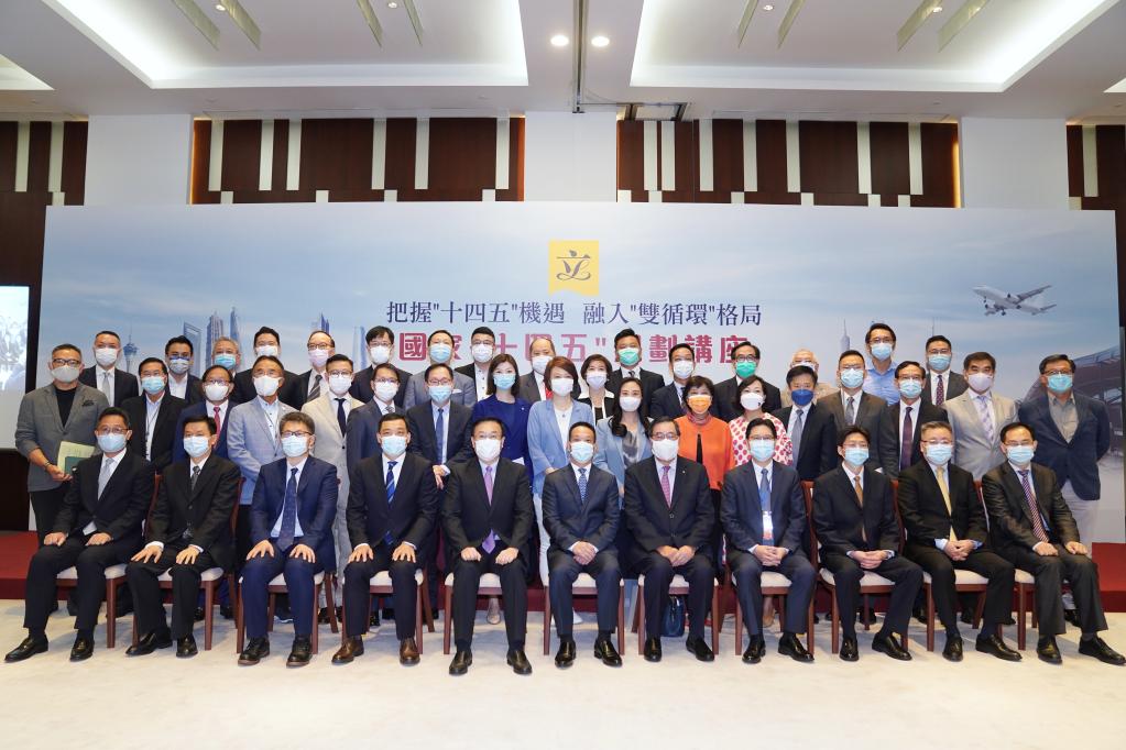 8月23日,在香港特区政府总部,嘉宾在国家“十四五”规划宣讲团首场宣讲活动前合影。新华社记者 王申 摄