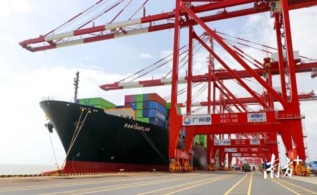6月5日,随着“兰丹计划”轮、“和进”轮陆续顺利挂靠广州港南沙集装箱三期码头,广州港南沙港区正式迎来全新美东航线AEC和泰越航线CTX2,为大湾区提供新航线服务、新目的港选择。